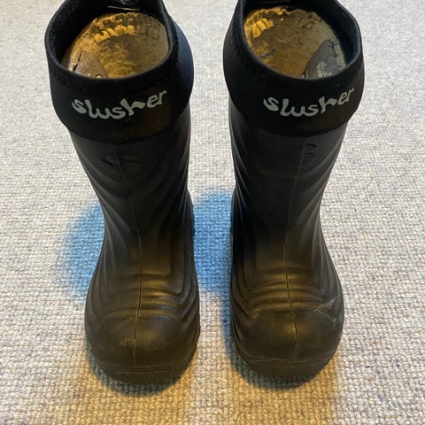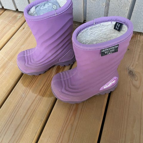 Rødrosa Slusher vinterstøvler med varmt for. De er godt og synlig brukt, men har mye bruk igjen.