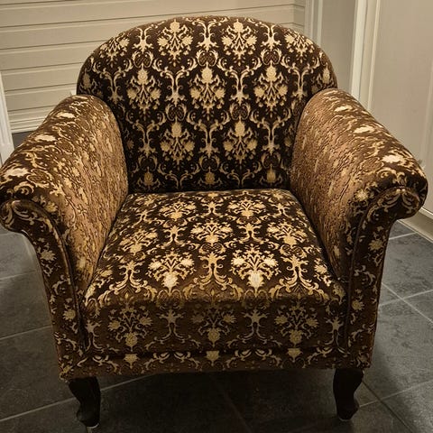 Eldre lenestol rød og brun