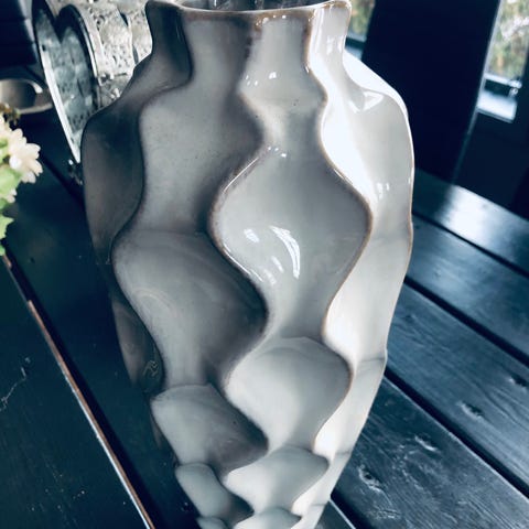 Stor krukke vase ca 50-60 cm diameter, omtrent 45 cm høy.