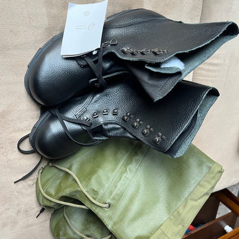 Svært solide militærstøvler i skinn.