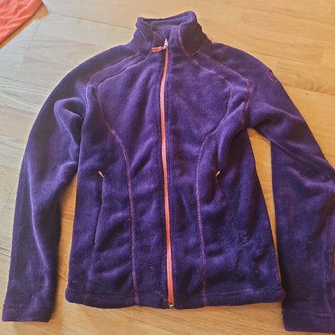 Varm og tøff Stormberg fleece jakke i str 164. Funker bra som mellomlag på kalde dager men også som jakke på våren/høsten. 2 lommer foran. Litt nuppete (se de siste to bildene). de første bildene er mest representativ ift fargen.