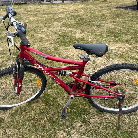 Grønn sykkel til barn. Godt brukt med fungerer fortsatt bra. Litt skade på håndtaket (se bilde) og en del riper og sånn.