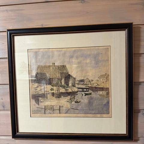 Kjøpt på nedlagte ByBrun på Sandnes, profesjonelt innrammet på Rammehuset Pedersen på Bryne.