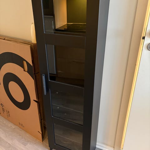 Solid og tidløst vitrineskap i hvitt med glass på tre sider og justerbare glasshyller. Perfekt til alt fra service og glass til samlerobjekter eller bøker du faktisk vil vise frem. Den har noen bruksmerker, men fremstår fortsatt som et verdig og flott skap