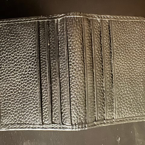 Kortholder i skinn/ lær med plass til mange kort, 15 lommer, ca. 7,5x11 cm. Ny