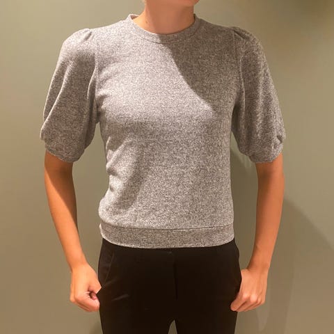 Kortermet T-skjorte genser / collegegenser med puffede armer / puffermer fra HM selges.