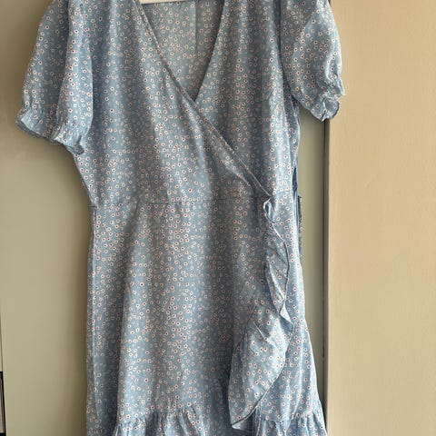 Kjempefin knytekjole fra Marie Philippe. Lys blå med hvite blomster. En sommerdrøm både på utseende og å ha på seg. Str.44, 100% lin. Kjøpt på Match. Denne er virkelig fin på. Og er skikkelig lei meg for at den er blitt altfor stor. God kvalitet så her har man kjole i mange år. Brukt et par ganger.