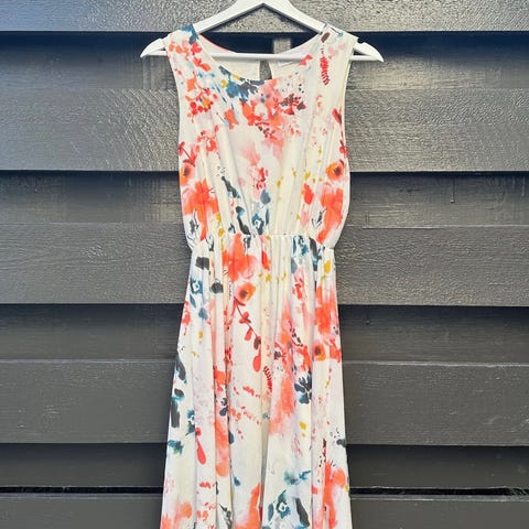 VAKKER/HVIT/RØD/FRØNN BLOMSTRET KJOLE», STR.36