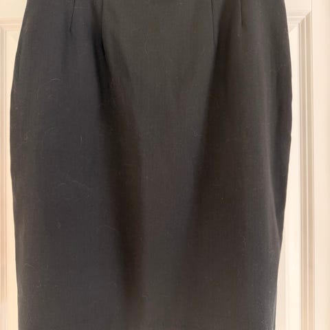 Står str 48, men er 40 cm tvers over i livet. Linningen er fast og skjørtet er elastisk