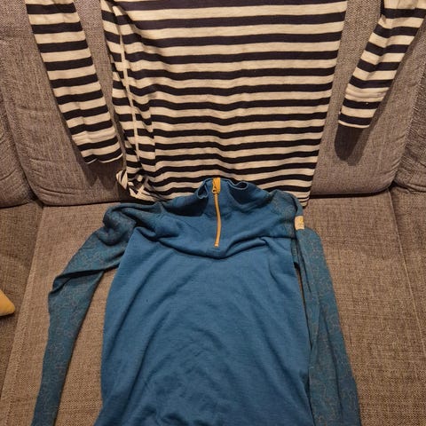 Genser på HM i str 110-116, striper. Og blå cardigan i str. 5 år fra Mayoral, designed in Spain.