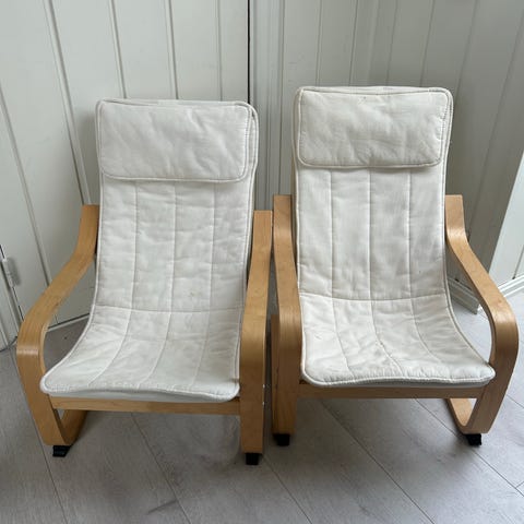 IKEA lenestol til barn. Noen slitasjemerker på baksiden (se bilde), og trekket har noen flekker - ikke prøvd å flekkfjerne. Ellers tipp topp!