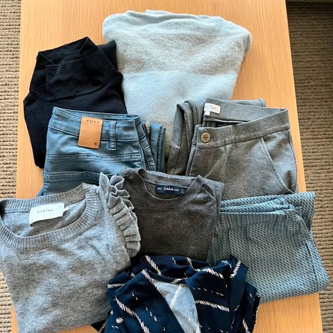 Klespakke bestående av gensere og singleter. Neste er svært lite og pent brukt. Alt er helt og pent.