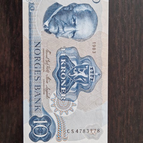 Norske sedler selges #Ti kroner fra 1969 og 1983