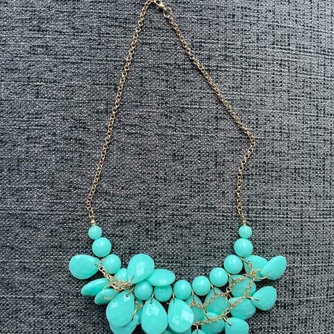 Flott turkissmykke med perler selges til 100 kr. Det kommer i en grønn tøypose. Det kan bli en fin gave til deg selv eller til noen du kjenner. Frakt kommer i tillegg.