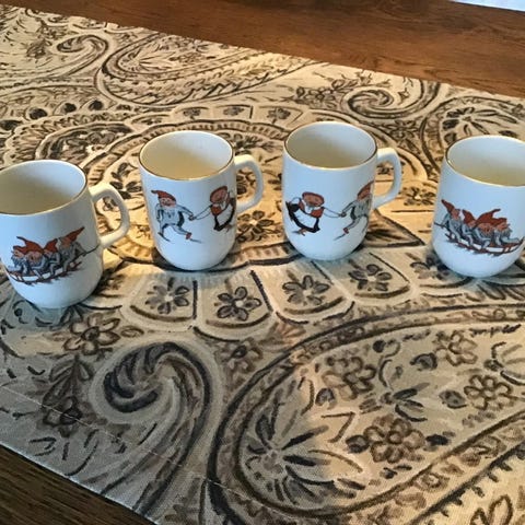Selger 10 stk kopp og skål i serviset Nisse fra Porsgrund.