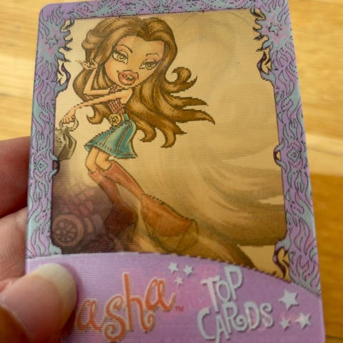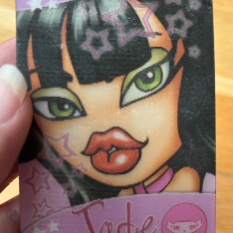 Bratz kort nr 22 Cloe selges. Kortet skifter bilde når du beveger på det (det var ikke så lett å få kameraet til å få det frem på en god måte).