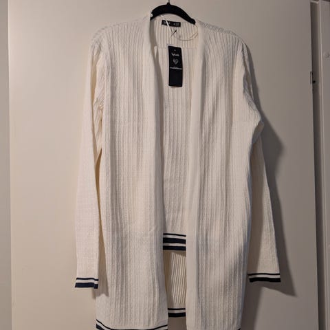 Cardigan (Høst) og vest (Vår) er begge i str S. Stor i størrelse, masser M. Kimono/kjole/topp er str L, men passer også godt til en M.