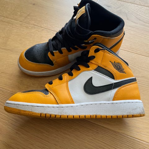 Liten slitasje i skotuppen på venstre sko. Ellers veldig fine