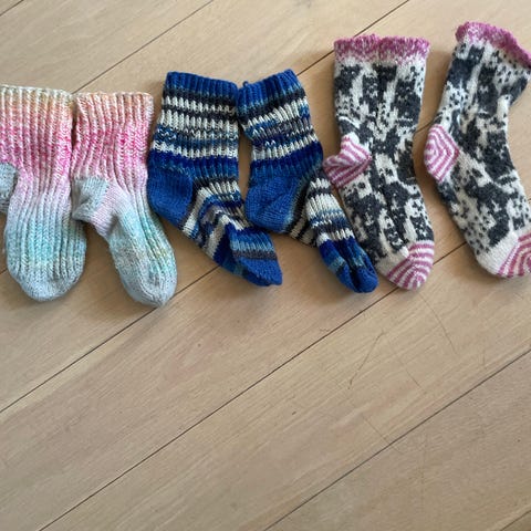 - 2 hjemmestrikkede ullsokker