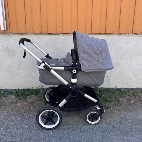 Kjøpt ny i 2016 og brukt til to barn. Ikke brukt som sovevogn i barnehage. Bagdelen er lang og god plass til pose om vinteren. Bagdelen er også kjempe enkel å ta av og hekte på armen og bære inn, eller opp trappa eller lignende. Understell på vogna er enkel å legge sammen og tar liten plass.