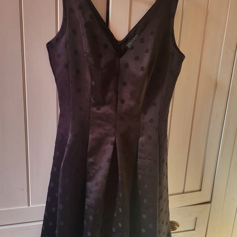 Lekker sort kjole med fine detaljer på armene. Veldig behagelig å ha på, litt stretch i stoffet. Brukt kun en gang. Modellen på bildet er 1,74 cm høy.