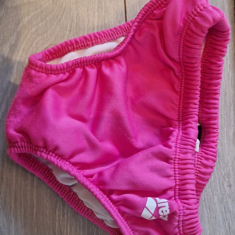 Praktisk og komfortabel badebleie med justering både i midjen og rundt føttene – perfekt for små svømmeentusiaster!