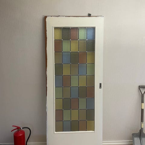 Gammel innedør med blyglass