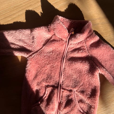 Fleecejakke i duskrosa i strl.4 (4år). Pent brukt.