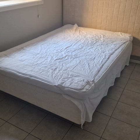 Sengen er godt brukt over flere år, men fortsatt i fin stand uten skader. Den er pent brukt og godt vedlikeholdt. Hjemmet er røykfritt og uten kjæledyr.