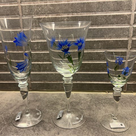Glasskål på fot laget av klart glass med dekorative mønstre på skålens kant og fot. Passer til servering eller som dekorativ gjenstand.