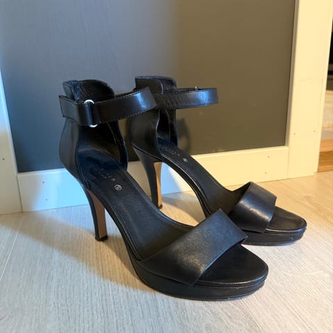 Lekre høyhælte sko i svart skinn.