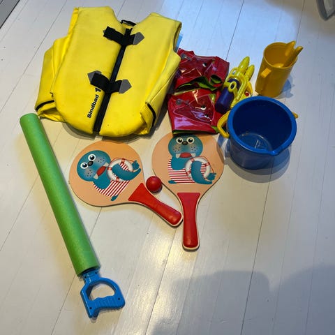 ubrukt strandryggsekk med sandleker fra Hape