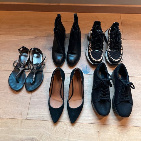 Sel 6 par høghælte fest-sko. 1 par ECCO raude semska skinn, 1 par ECCO svarte glitrande, 1 par blå Høgl semska skinn, 1 par Jumex gull glitrande, 1 par ECCO korte støvletter svart semska skinn, 1 par Vagabond høge skinnstøvletter med snorer bak. Alle sko er pent brukt, men tida for høge hælar er forbi. Alle er str. 37. Sel dei samla for kr 800,- for allle 6 para.