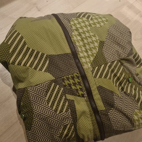 Jeg kjøpte denne barnevogna brukt på Finn til vårt siste barn og forrige eier sa den var blitt brukt kun til ett barn hos dem og ny før dette. Da jeg begynte å ta vogna i bruk oppdaget jeg at kalesjefestet var knekt, jeg kontaktet forrige eier som mente hun ikke var klar over dette da hun solgte vogna til meg. Jeg sydde på en båndløkke og knøt fast en snor for å holde kalesjen i ønsket posisjon. Dette har funket fint i bruk for meg. Vogna er ikke vasket og den gis bort slik den er. Det følger med to vognoppsett, baby og sportsdel + regntrekk.