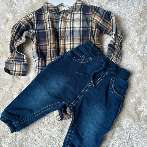 Skjorte-body / Bluse-body (med prislapp) + Romper - Str. 62-68