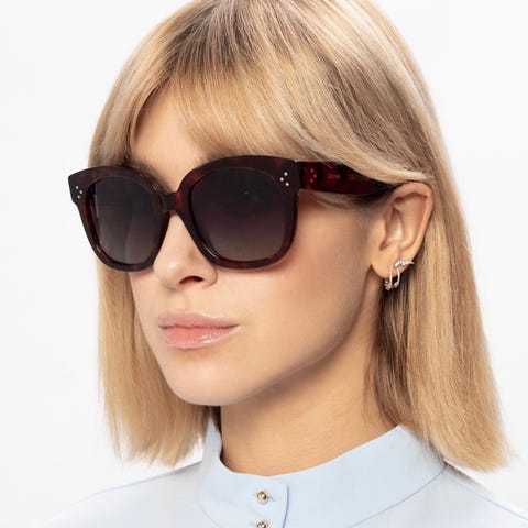 De har rosegull/gull innfatning og blåskjær i glasset.