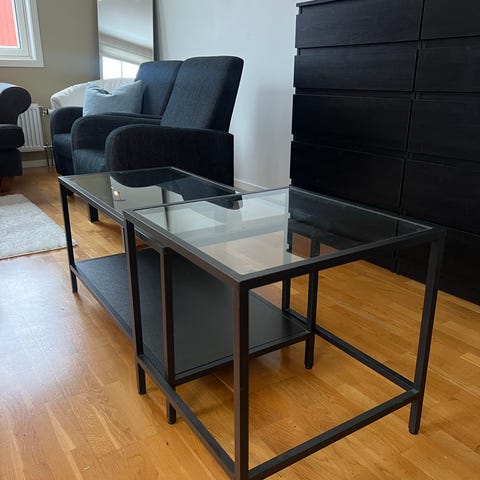 Selger et praktisk og stilrent settbord fra IKEA, med to bord i ulik høyde som kan brukes sammen eller hver for seg. Perfekt som sofabord, sidebord eller til å gi litt ekstra avlastningsplass når du trenger det.