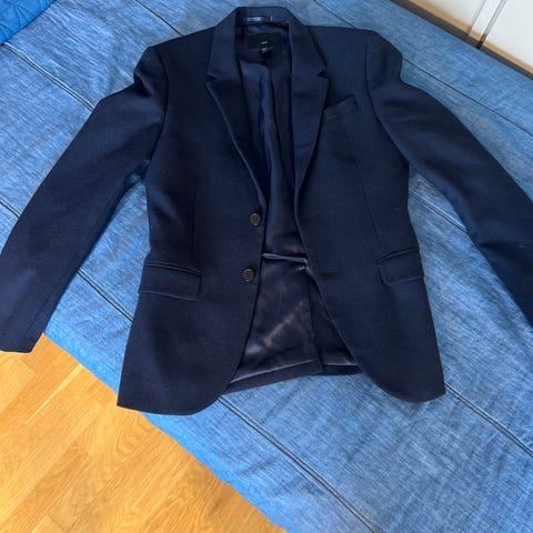 Blazer i marineblå fra H&M. Passer typisk til brystmål ca. 96–100 cm og livmål ca. 82–86 cm. Lite brukt.