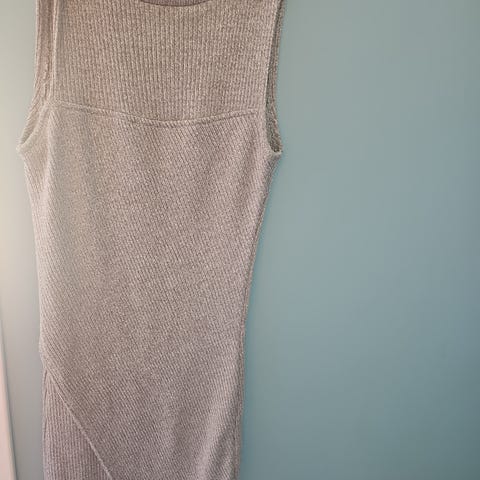 Flott topp i viscose, polyester og lurex. Som ny. Lysgrå med glittertråder