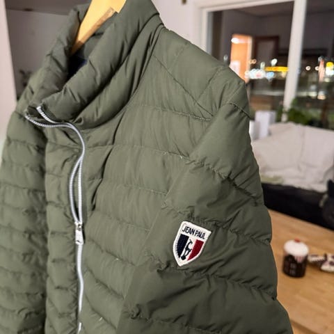Jean Paul dunjakke str. XXL, men vil si den passer en XL (kan nok også passe en L). Ingen hull eller flekker.