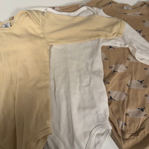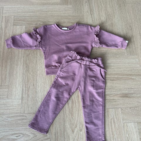 Buksen har knyting i midjen, er strikket høyere bak for bedre passform. Ben kan brettes opp eller ned etter som babyen vokser.