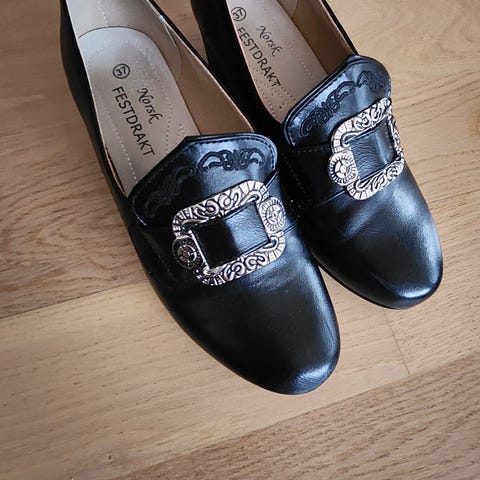 Brukte bunadsko med lav hæl til salgs.
