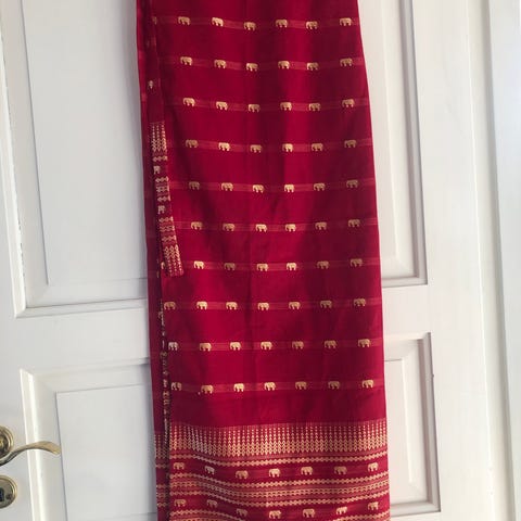 Frank’s Darling langt, rett skjørt i rosa, burgunder, orange og gull. Kjøpt i boutique på Glassmagasinet tidlig 2000-tallet.