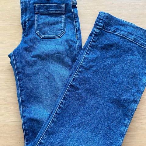 Flare Jeans fra Never Denim, str M. Ganske lang i beina. Som ny.