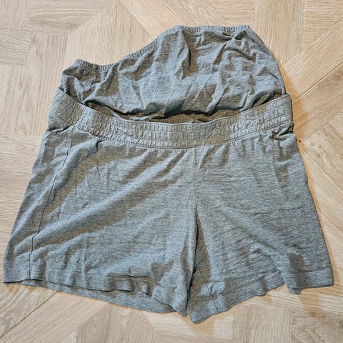 Svart gravidshorts med bånd over magen. Str L fra HM.