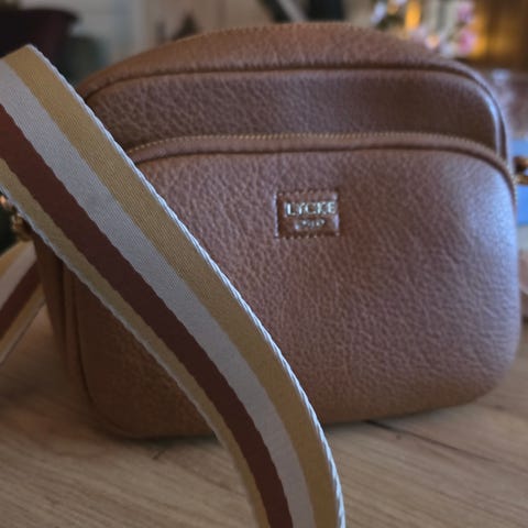 Vesken har noen få bruksmerker i den ene lommen ellers fremstår vesken som ny.