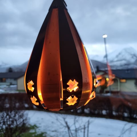 Dråpelamper fra Coronell designet av Werner Schou selges for kr 1000. Pene, men må pusses.