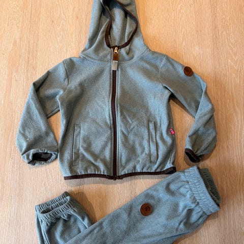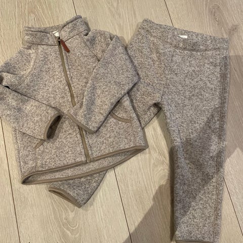 Pent brukt fleecesett fra Bruse. Farge fremstår litt feil på bildene, det er lysebrunt som på nærbildene. Veldig pent brukt. Merket 92, men synes det er romslig i størrelse.