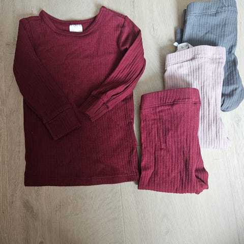 6 basicbodyer fra H&M og et sett med body og bukse.