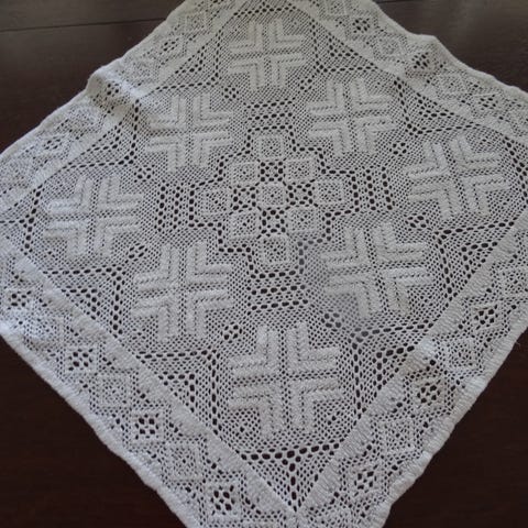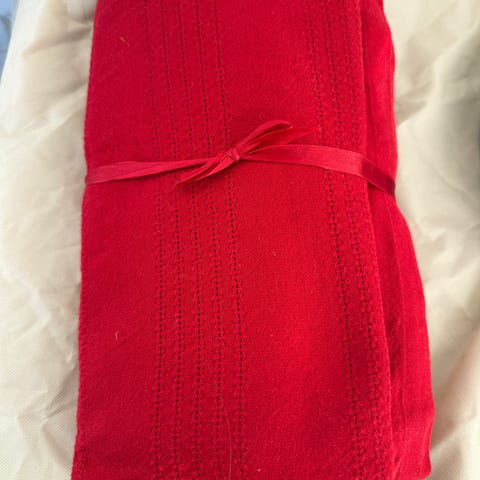 Pen duk til spisebord. Tror den er maskinbrodert. Bredde 175cm og lengde 260cm.